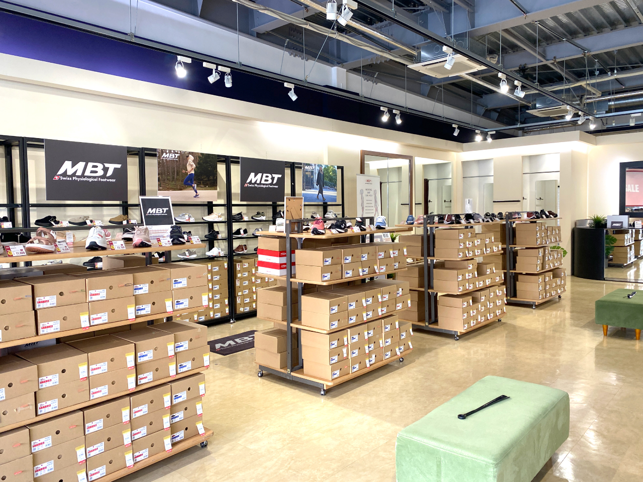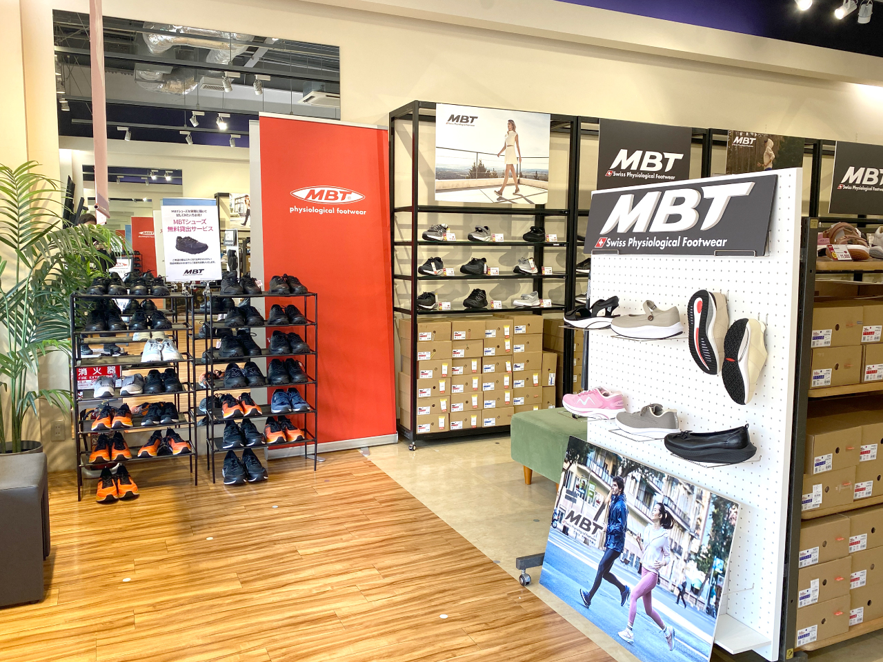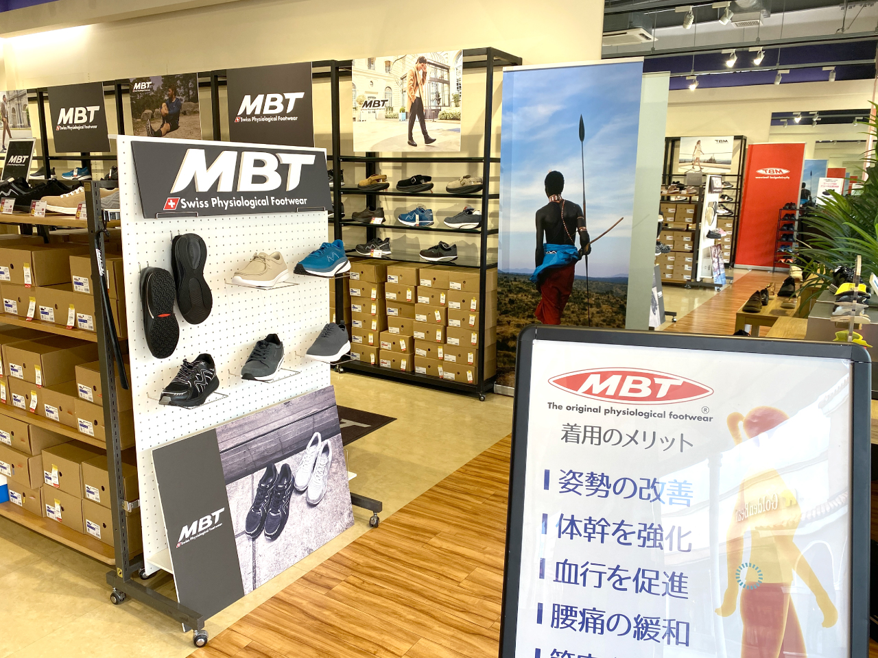 店内にはMBTシューズが体験できる貸出コーナーを設置!ぜひアウトレット館内でMBTを履いてお買い物をお楽しみください!